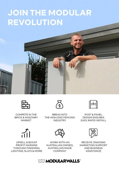 Description: ModularWalls are Australia’s leading supplier of modular exterior walling, fencing and noise barrier systems. They have a trade partner network that installs their manufactured products all around Australia. In a bid to increase the size of their trade partner network, this flyer was created and distributed at trade shows in Melbourne, Brisbane & Sydney.